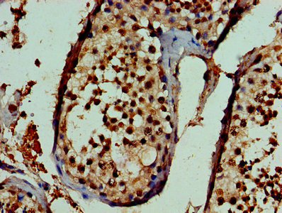 Immunohistochemistry of paraffin-embedded human testis tissue using CSB-PA883363LA01HU at dilution of 1:100