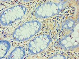Immunohistochemistry of paraffin-embedded human colon cancer using CSB-PA002358ESR1HU at dilution of 1:100