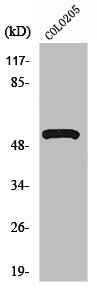 • Western Blot analysis of COLO205 cells using V-ATPase H Polyclonal Antibody