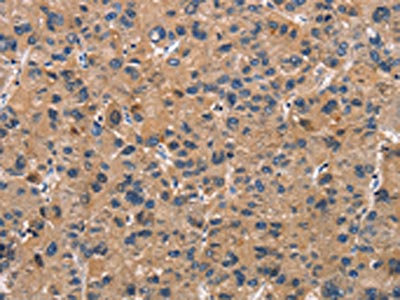 The image on the left is immunohistochemistry of paraffin-embedded Human liver cancer tissue using CSB-PA904637(ATP7A Antibody) at dilution 1/50, on the right is treated with synthetic peptide. (Original magnification: ×200)