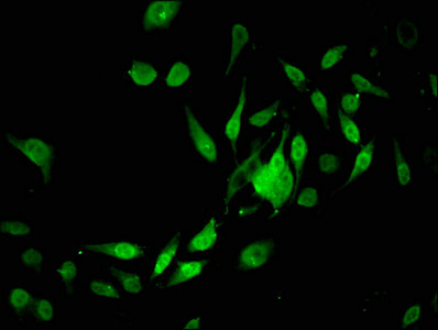 • Immunofluorescent analysis of Hela cells using CSB-PA010418OA09acHU at dilution of 1:100 and Alexa Fluor 488-congugated AffiniPure Goat Anti-Rabbit IgG(H+L)