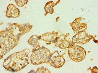Immunohistochemistry of paraffin-embedded human placenta tissue using CSB-PA890743ESR1HU at dilution of 1:100