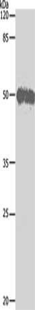 • Gel: 10%SDS-PAGE, Lysate: 20 μg, Lane: Hela cells, Primary antibody: CSB-PA598474(BAG5 Antibody) at dilution 1/500, Secondary antibody: Goat anti rabbit IgG at 1/8000 dilution, Exposure time: 1 minute