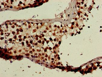 Immunohistochemistry of paraffin-embedded human testis tissue using CSB-PA002550LA01HU at dilution of 1:100