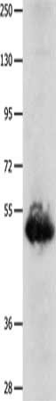 Gel: 8%SDS-PAGE, Lysate: 40 μg, Lane: Human lung cancer tissue, Primary antibody: CSB-PA080665(BPIFB3 Antibody) at dilution 1/1600, Secondary antibody: Goat anti rabbit IgG at 1/8000 dilution, Exposure time: 30 seconds