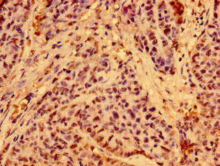 Immunohistochemistry of paraffin-embedded human ovarian cancer using CSB-PA003434LA01HU at dilution of 1:100