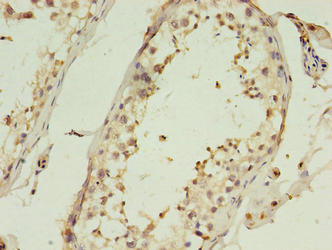 Immunohistochemistry of paraffin-embedded human testis tissue using CSB-PA874831EA01HU at dilution of 1:100