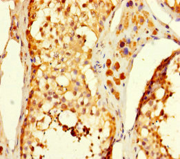 Immunohistochemistry of paraffin-embedded human testis tissue using CSB-PA004030LA01HU at dilution of 1:100