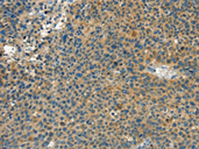 The image on the left is immunohistochemistry of paraffin-embedded Human thyroid cancer tissue using CSB-PA680635(CALCA Antibody) at dilution 1/60, on the right is treated with synthetic peptide. (Original magnification: ×200)