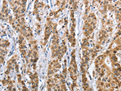 • The image on the left is immunohistochemistry of paraffin-embedded Human gastric cancer tissue using CSB-PA106469(CANX Antibody) at dilution 1/40, on the right is treated with fusion protein. (Original magnification: ×200)