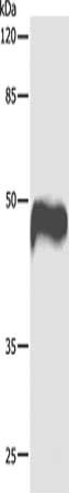 • Gel: 8%SDS-PAGE, Lysate: 40 μg, Lane: Hela cells, Primary antibody: CSB-PA758068(CASP1 Antibody) at dilution 1/1000, Secondary antibody: Goat anti rabbit IgG at 1/8000 dilution, Exposure time: 30 seconds
