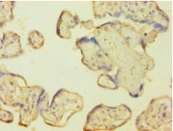 • Immunohistochemistry of paraffin-embedded human placenta tissue using CSB-PA05824A0Rb at dilution of 1:100