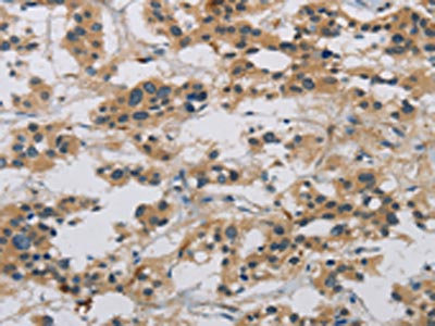 • The image is immunohistochemistry of paraffin-embedded Human thyroid cancer tissue using CSB-PA763138(CASP9 Antibody) at dilution 1/60. (Original magnification: ×200)