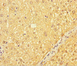 Immunohistochemistry of paraffin-embedded human liver cancer using CSB-PA745763LA01HU at dilution of 1:100
