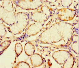 Immunohistochemistry of paraffin-embedded human gastric cancer using CSB-PA745763LA01HU at dilution of 1:100
