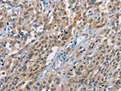 The image on the left is immunohistochemistry of paraffin-embedded Human esophagus cancer tissue using CSB-PA016670(CBR1 Antibody) at dilution 1/40, on the right is treated with fusion protein. (Original magnification: ×200)