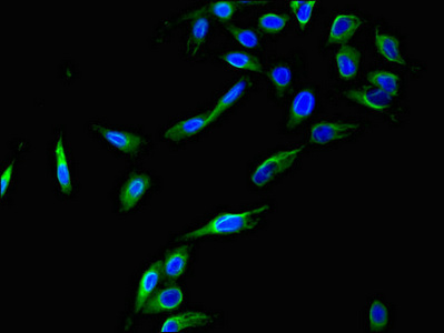 • Immunofluorescent analysis of Hela cells using CSB-PA004810LA01HU at dilution of 1:100 and Alexa Fluor 488-congugated AffiniPure Goat Anti-Rabbit IgG(H+L)
