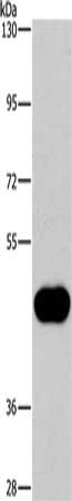• Gel: 6%SDS-PAGE, Lysate: 40 μg, Lane: Raji cells, Primary antibody: CSB-PA134528(CD38 Antibody) at dilution 1/260, Secondary antibody: Goat anti rabbit IgG at 1/8000 dilution, Exposure time: 3 minutes