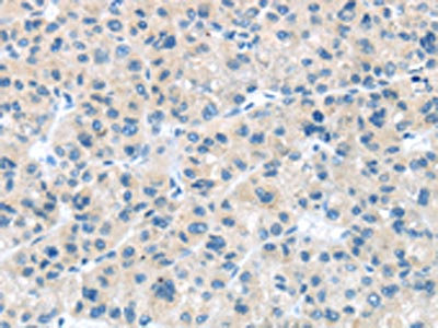 The image on the left is immunohistochemistry of paraffin-embedded Human liver cancer tissue using CSB-PA259468(CD63 Antibody) at dilution 1/25, on the right is treated with synthetic peptide. (Original magnification: ×200)