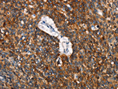 The image on the left is immunohistochemistry of paraffin-embedded Human cervical cancer tissue using CSB-PA282654(CD68 Antibody) at dilution 1/30, on the right is treated with synthetic peptide. (Original magnification: ×200)
