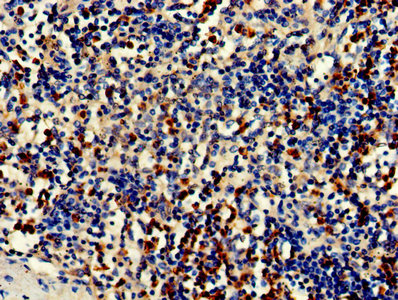Immunohistochemistry of paraffin-embedded human spleen tissue using CSB-PA00845A0Rb at dilution of 1:100
