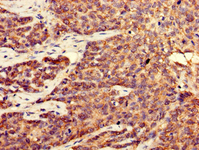Immunohistochemistry of paraffin-embedded human ovarian cancer using CSB-PA005067LA01HU at dilution of 1:100