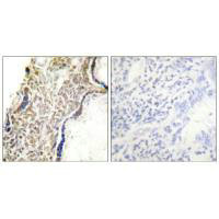 Western blot analysis of extracts from 293 cells (Lane 2), using p14 ARF antiobdy. The lane on the left is treated with synthesized peptide.