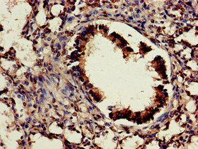 Immunohistochemistry of paraffin-embedded human lung tissue using CSB-PA005129LA01HU at dilution of 1:100
