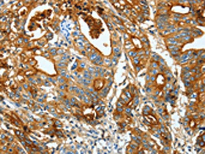 組織特異性:Expressed in columnar epithelial and goblet cells of the colon (at protein level). Found in adenocarcinomas of endodermally derived digestive system epithelium and fetal colon.