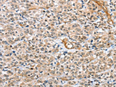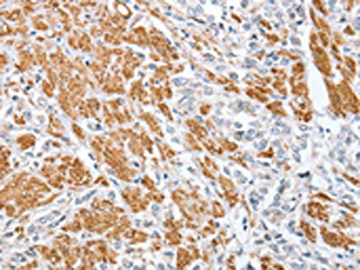 The image on the left is immunohistochemistry of paraffin-embedded Human esophagus cancer tissue using CSB-PA209620(CENPC Antibody) at dilution 1/70, on the right is treated with fusion protein. (Original magnification: ×200)