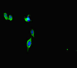 Immunofluorescent analysis of Hela cells using CSB-PA005241LA01HU at dilution of 1:100 and Alexa Fluor 488-congugated AffiniPure Goat Anti-Rabbit IgG(H+L)