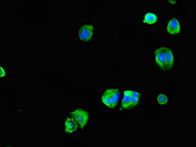 • Immunofluorescent analysis of MCF-7 cells using CSB-PA836778LA01HU at dilution of 1:100 and Alexa Fluor 488-congugated AffiniPure Goat Anti-Rabbit IgG(H+L)