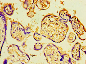 Immunohistochemistry of paraffin-embedded human placenta tissue using CSB-PA005325ESR2HU at dilution of 1:100