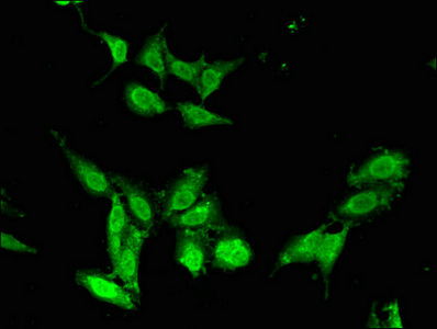 Immunofluorescent analysis of Hela cells using CSB-PA848409LA01HU at dilution of 1:100 and Alexa Fluor 488-congugated AffiniPure Goat Anti-Rabbit IgG(H+L)