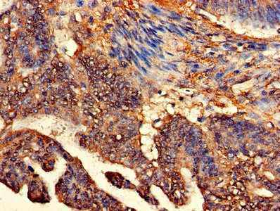 Immunohistochemistry of paraffin-embedded human colon cancer using CSB-PA005472LA01HU at dilution of 1:100