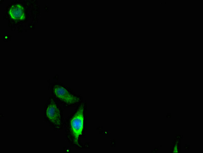 Immunofluorescent analysis of A549 cells using CSB-PA005500ESR2HU at dilution of 1:100 and Alexa Fluor 488-congugated AffiniPure Goat Anti-Rabbit IgG(H+L)