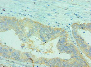 Immunohistochemistry of paraffin-embedded human colon cancer using CSB-PA005500ESR2HU at dilution of 1:100