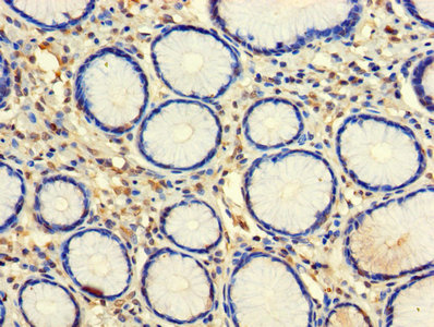 Immunohistochemistry of paraffin-embedded human stomach tissue using CSB-PA005521LA01HU at dilution of 1:100