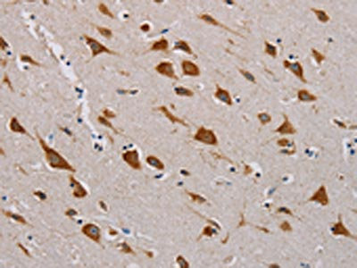 • The image on the left is immunohistochemistry of paraffin-embedded Human brain tissue using CSB-PA968805(CMC4 Antibody) at dilution 1/55, on the right is treated with fusion protein. (Original magnification: ×200)