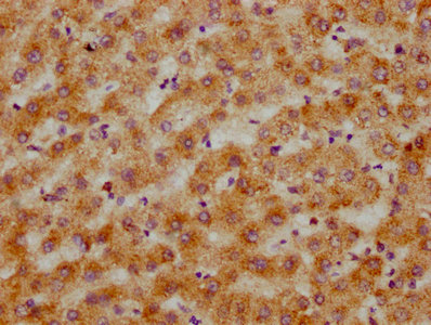 • IHC image of CSB-PA005902LA01HU diluted at 1:200 and staining in paraffin-embedded human liver tissue performed on a Leica BondTM system. After dewaxing and hydration, antigen retrieval was mediated by high pressure in a citrate buffer (pH 6.0). Section was blocked with 10% normal goat serum 30min at RT. Then primary antibody (1% BSA) was incubated at 4°C overnight. The primary is detected by a biotinylated secondary antibody and visualized using an HRP conjugated SP system.