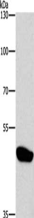 • Gel: 8%SDS-PAGE, Lysate: 40 μg, Lane: Mouse brain tissue, Primary antibody: CSB-PA170398(CTBP1 Antibody) at dilution 1/500, Secondary antibody: Goat anti rabbit IgG at 1/8000 dilution, Exposure time: 3 minutes