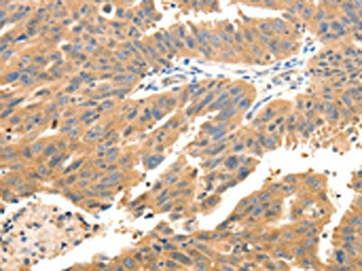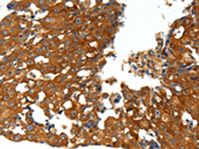 • The image on the left is immunohistochemistry of paraffin-embedded Human ovarian cancer tissue using CSB-PA968386(CXCL12 Antibody) at dilution 1/20, on the right is treated with synthetic peptide. (Original magnification: ×200)
