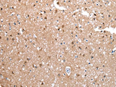 • The image on the left is immunohistochemistry of paraffin-embedded Human brain tissue using CSB-PA250029(CXCR4 Antibody) at dilution 1/20, on the right is treated with synthetic peptide. (Original magnification: ×200)
