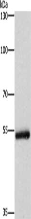 Gel: 8%SDS-PAGE, Lysate: 40 μg, Lane: Human colon cancer tissue, Primary antibody: CSB-PA254762(CYP2B6 Antibody) at dilution 1/400, Secondary antibody: Goat anti rabbit IgG at 1/8000 dilution, Exposure time: 4 minutes