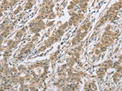 • The image on the left is immunohistochemistry of paraffin-embedded Human gastric cancer tissue using CSB-PA106326(CYP2C9 Antibody) at dilution 1/50, on the right is treated with fusion protein. (Original magnification: ×200)