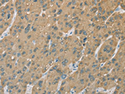 • The image on the left is immunohistochemistry of paraffin-embedded Human liver cancer tissue using CSB-PA106326(CYP2C9 Antibody) at dilution 1/50, on the right is treated with fusion protein. (Original magnification: ×200)