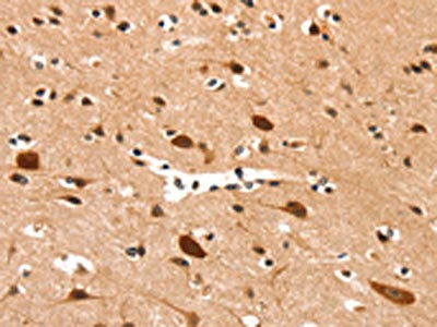 • The image on the left is immunohistochemistry of paraffin-embedded Human brain tissue using CSB-PA572968(DDX4 Antibody) at dilution 1/25, on the right is treated with synthetic peptide. (Original magnification: ×200)