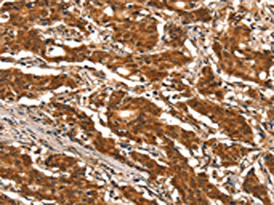 • The image on the left is immunohistochemistry of paraffin-embedded Human gastic cancer tissue using CSB-PA572968(DDX4 Antibody) at dilution 1/25, on the right is treated with synthetic peptide. (Original magnification: ×200)
