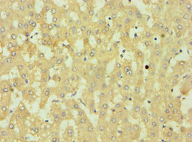 Immunohistochemistry of paraffin-embedded human liver tissue using CSB-PA883367ESR2HU at dilution of 1:100