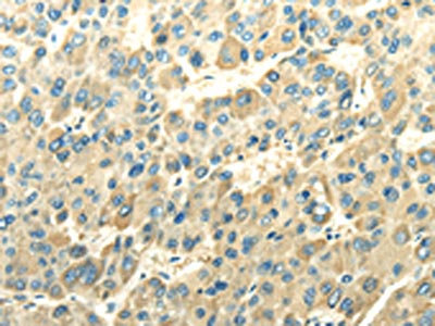 • The image on the left is immunohistochemistry of paraffin-embedded Human liver cancer tissue using CSB-PA445587(DLAT Antibody) at dilution 1/30, on the right is treated with fusion protein. (Original magnification: ×200)